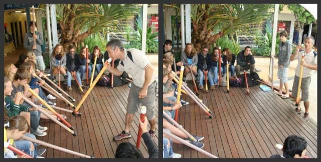 Global Village Noosa students enjoying the teenage activity program took part in a Didgeridoo lesson with Scott from Bush Labs.