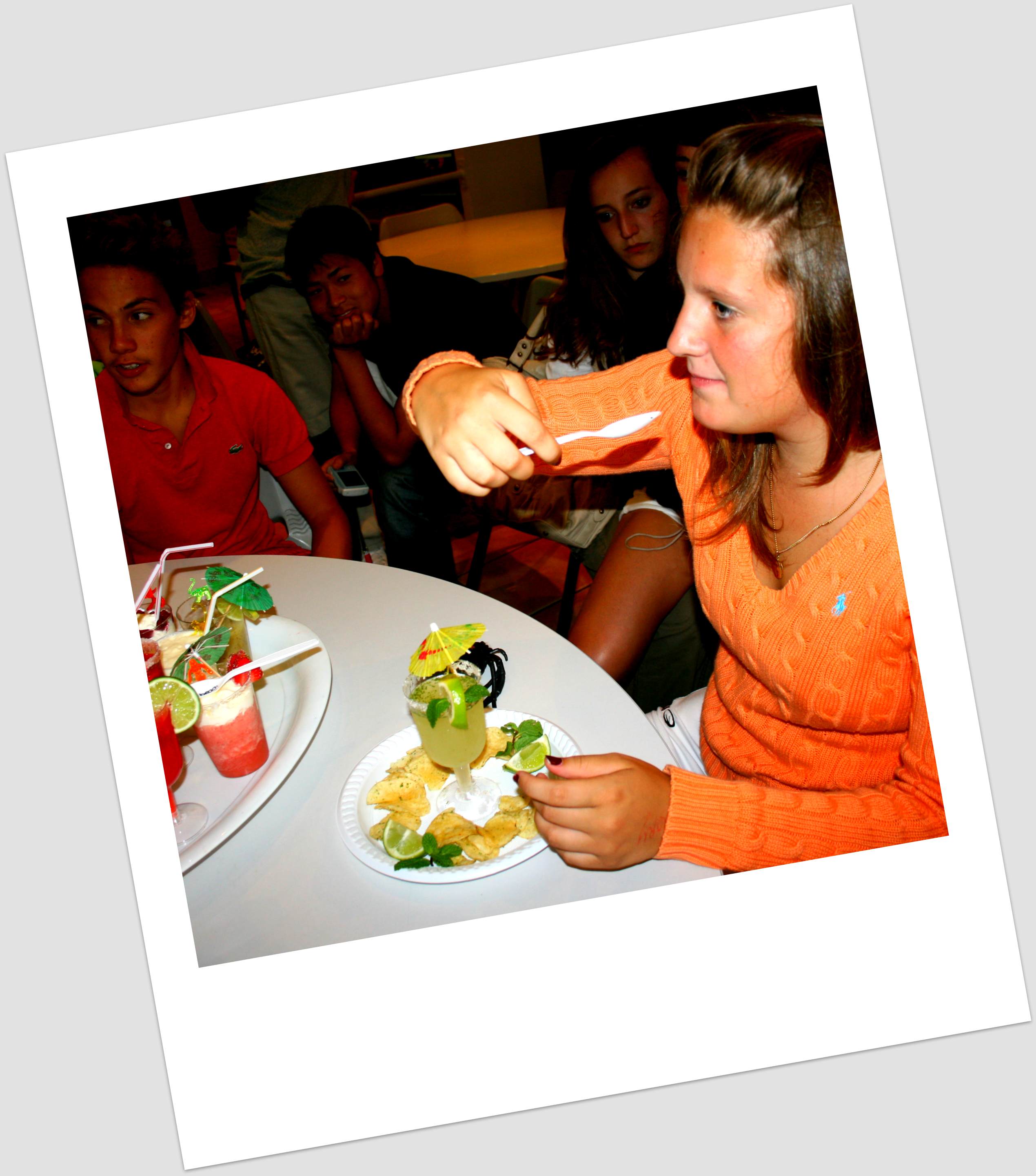 Ready, Set, Go! The blender began to buzz, the shaker started to shake, knives chopped , the iPod played, nationalities mixed and the race was on. One by one mocktails were created, perfected and placed carefully into the fridge for the final presentation.