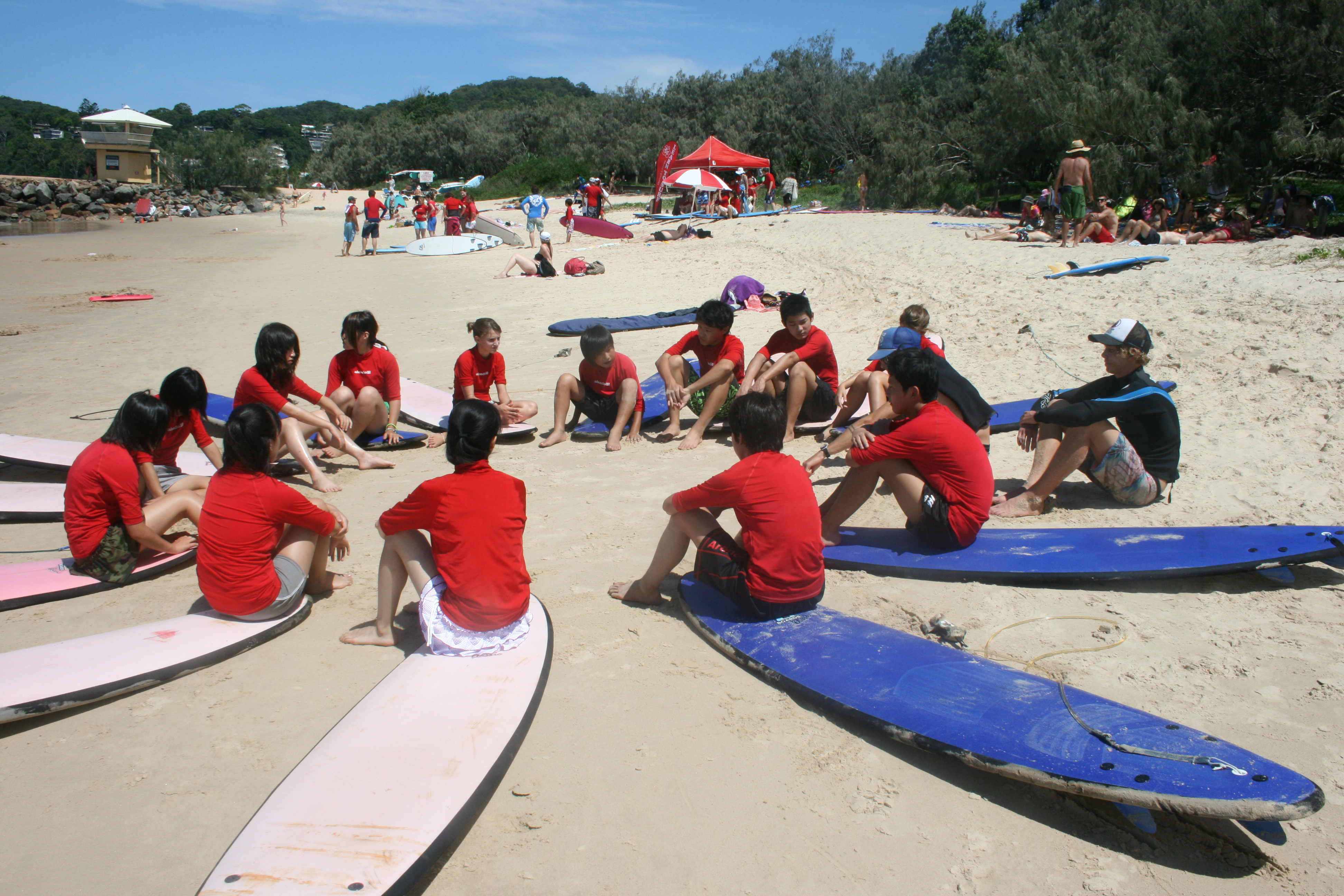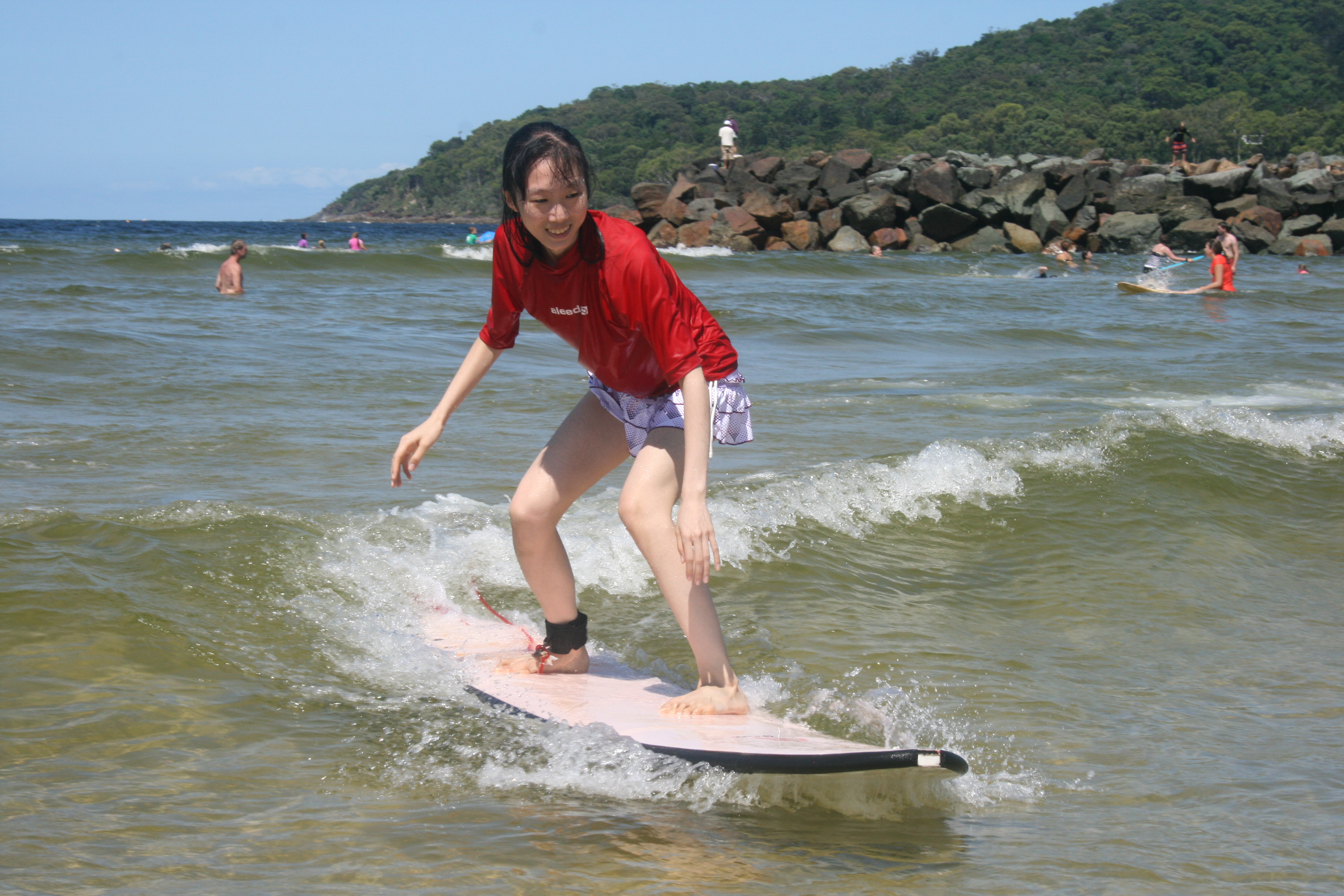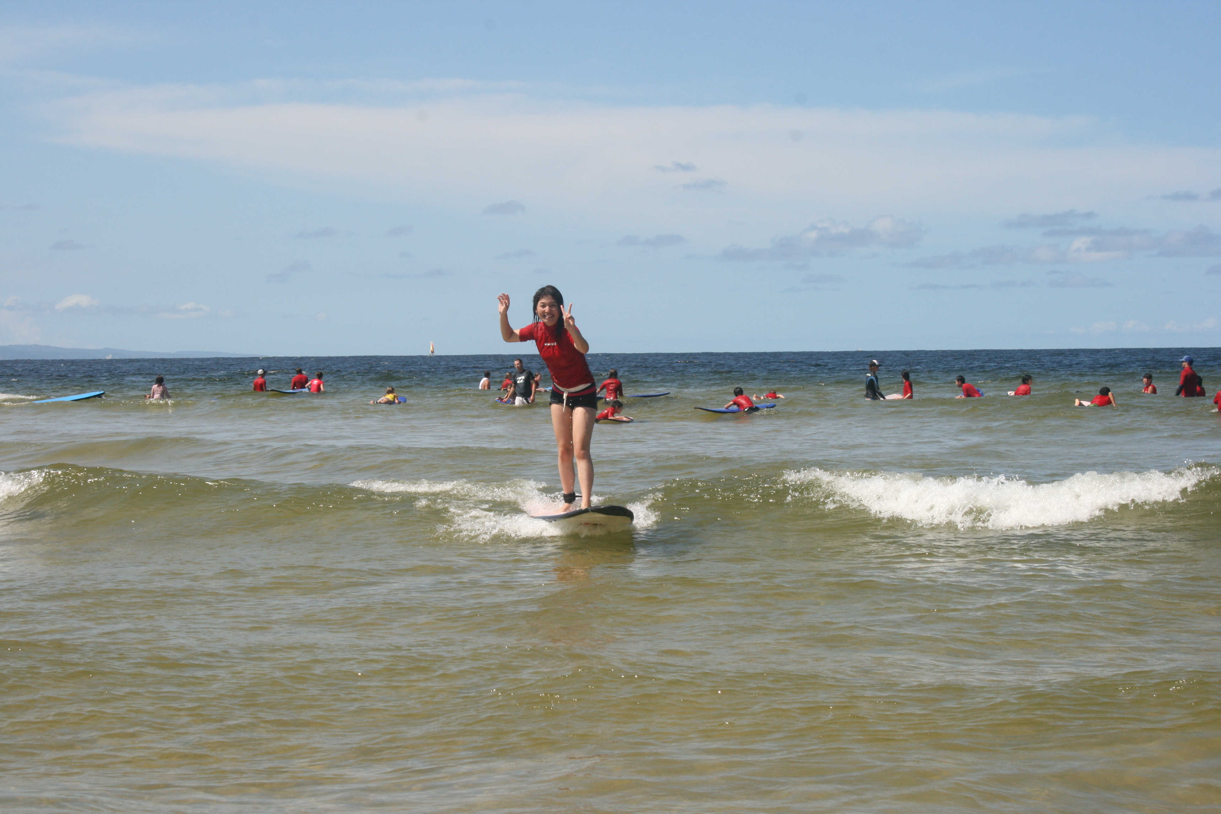 Mao has great balance, she has a background in Ballet so she is naturally gifted when it comes to riding waves. Today was also her last day, what a great way to finish her visit to Australia in the surf at Noosa with her classmates.