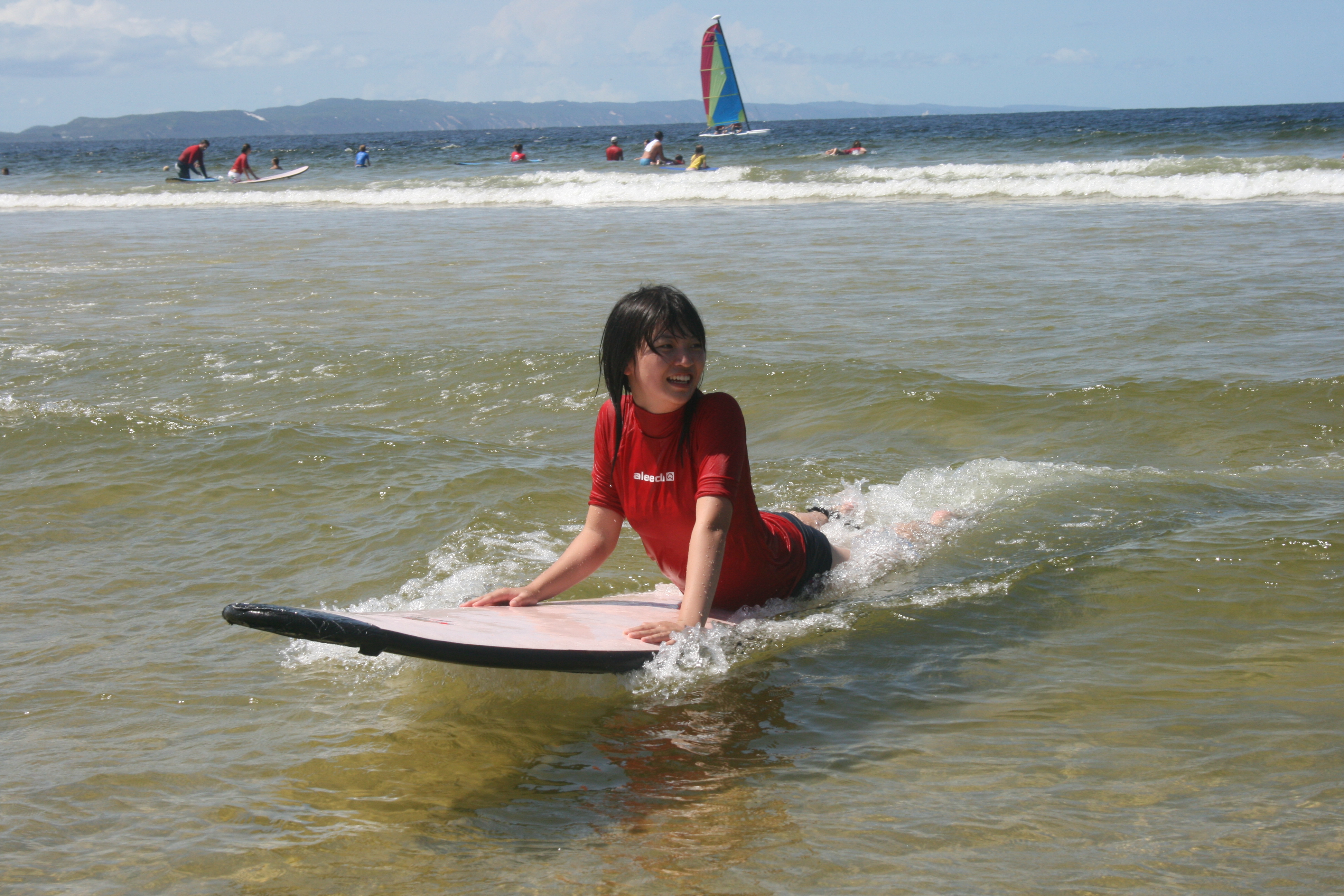 Chihiro and Naoki were quite good surfers and caught good waves. Miwa had a good time with instructor Tim who helped her to catch a few good waves.