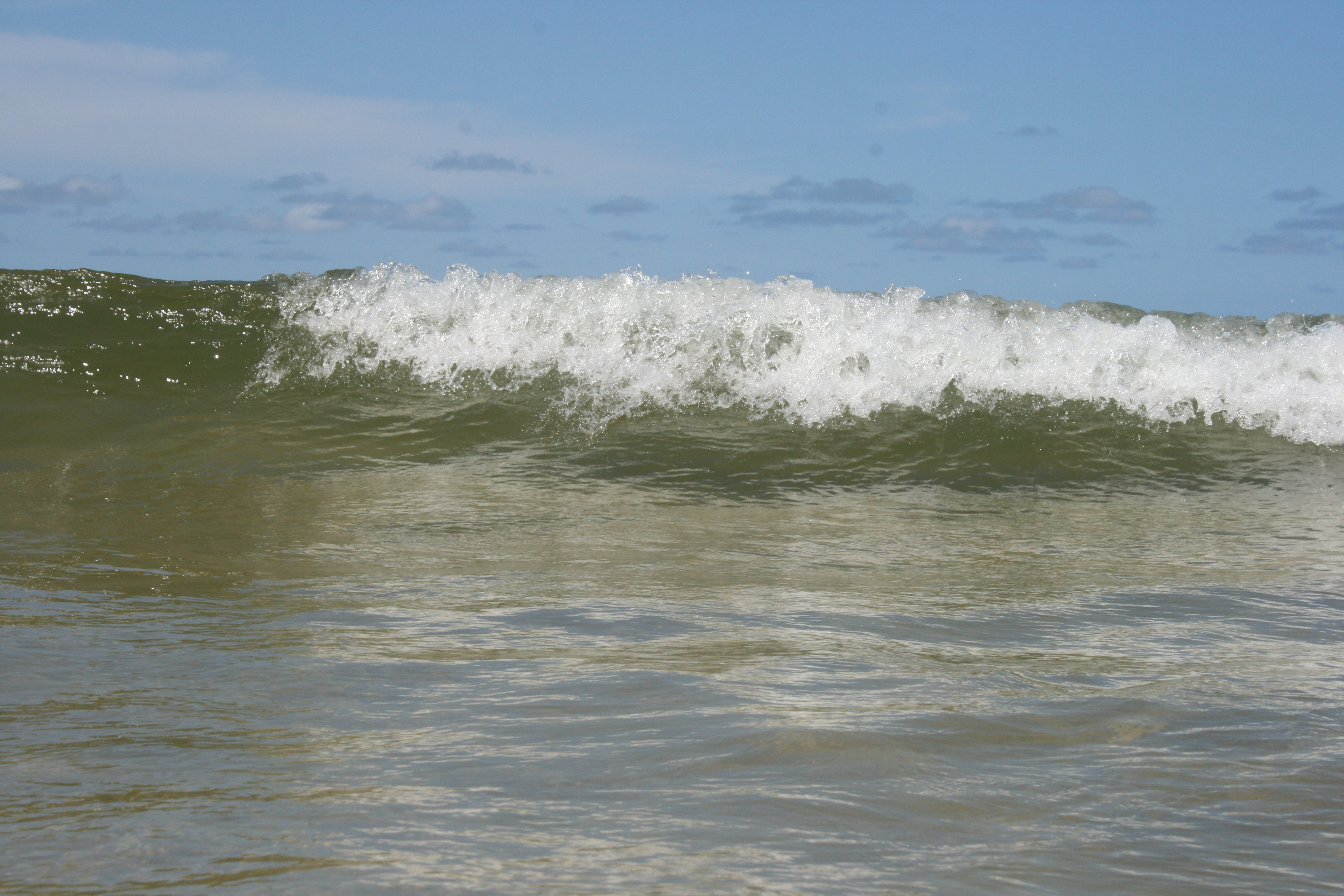 The weather was really fantastic today and the water was very clear and beautiful. Take a look at the picture below, this is what a wave looks like from the water when you are on the board.