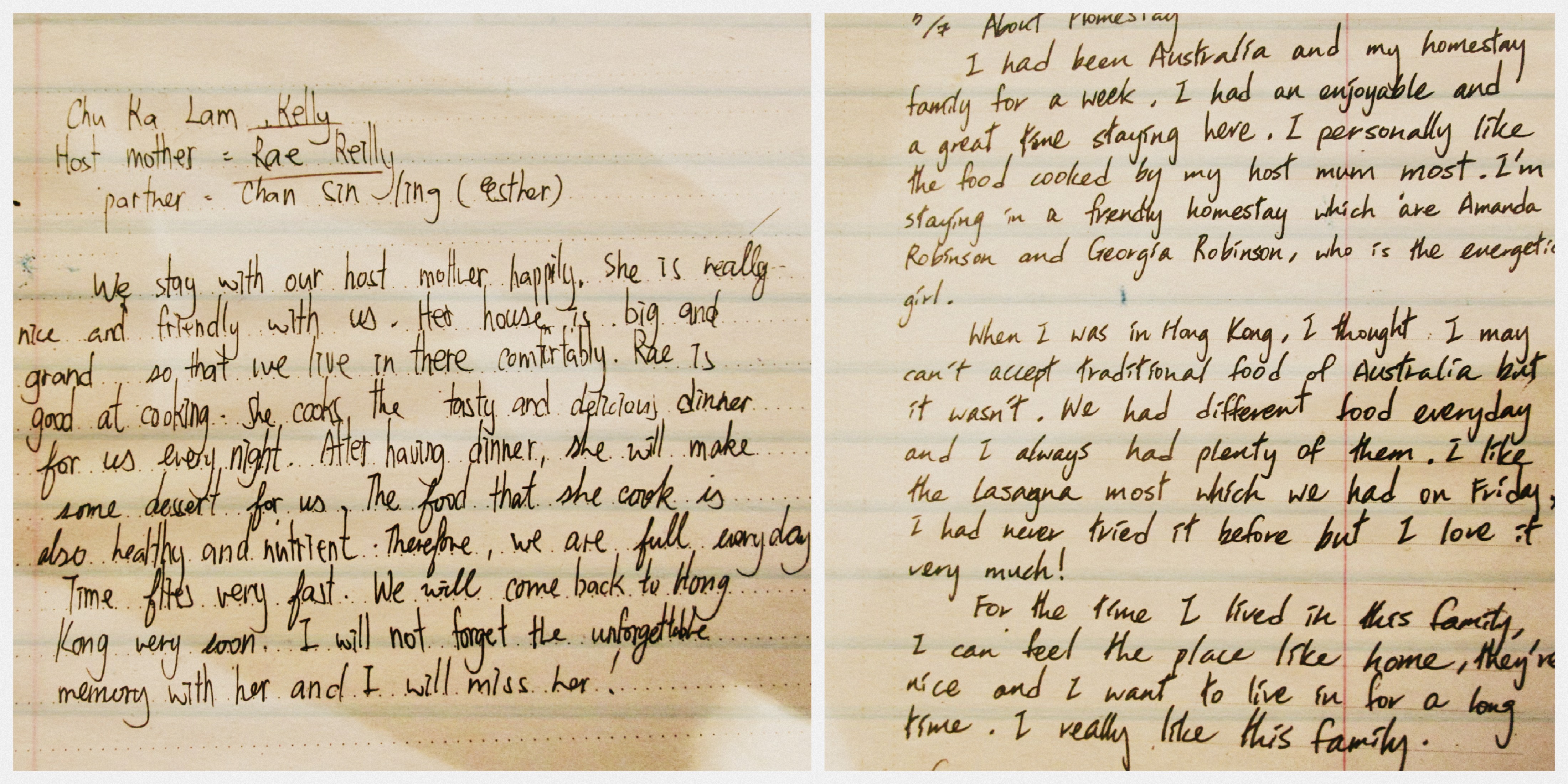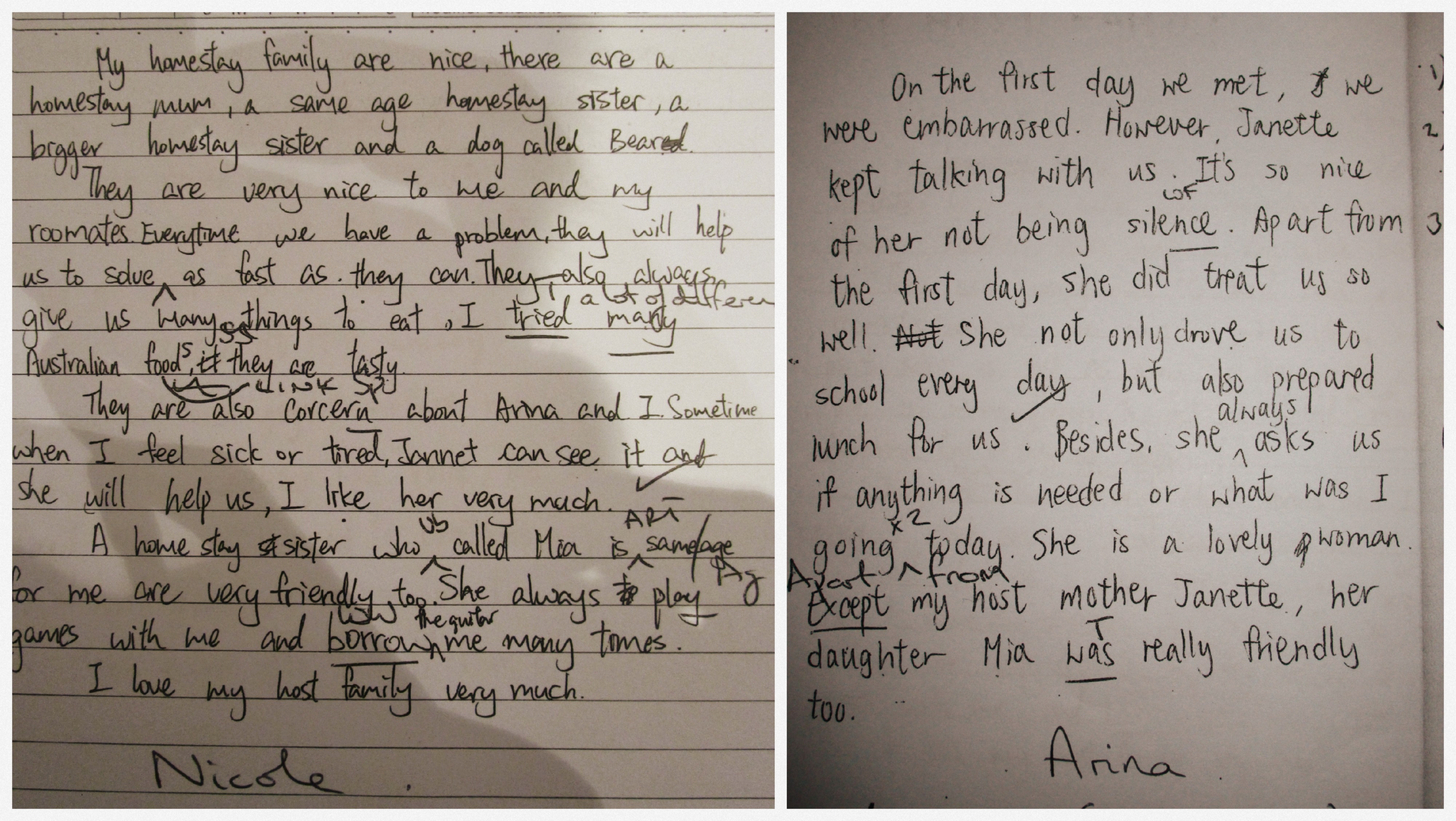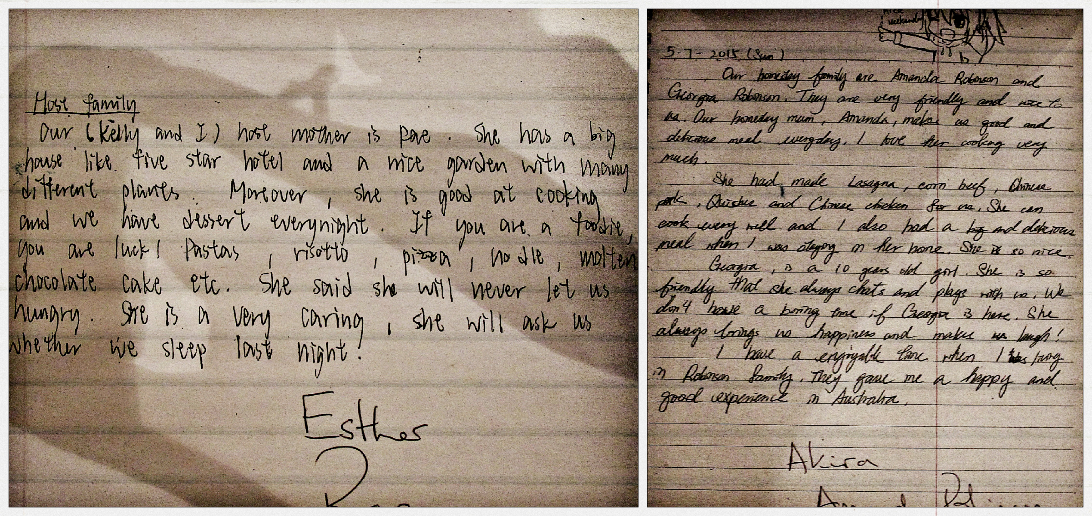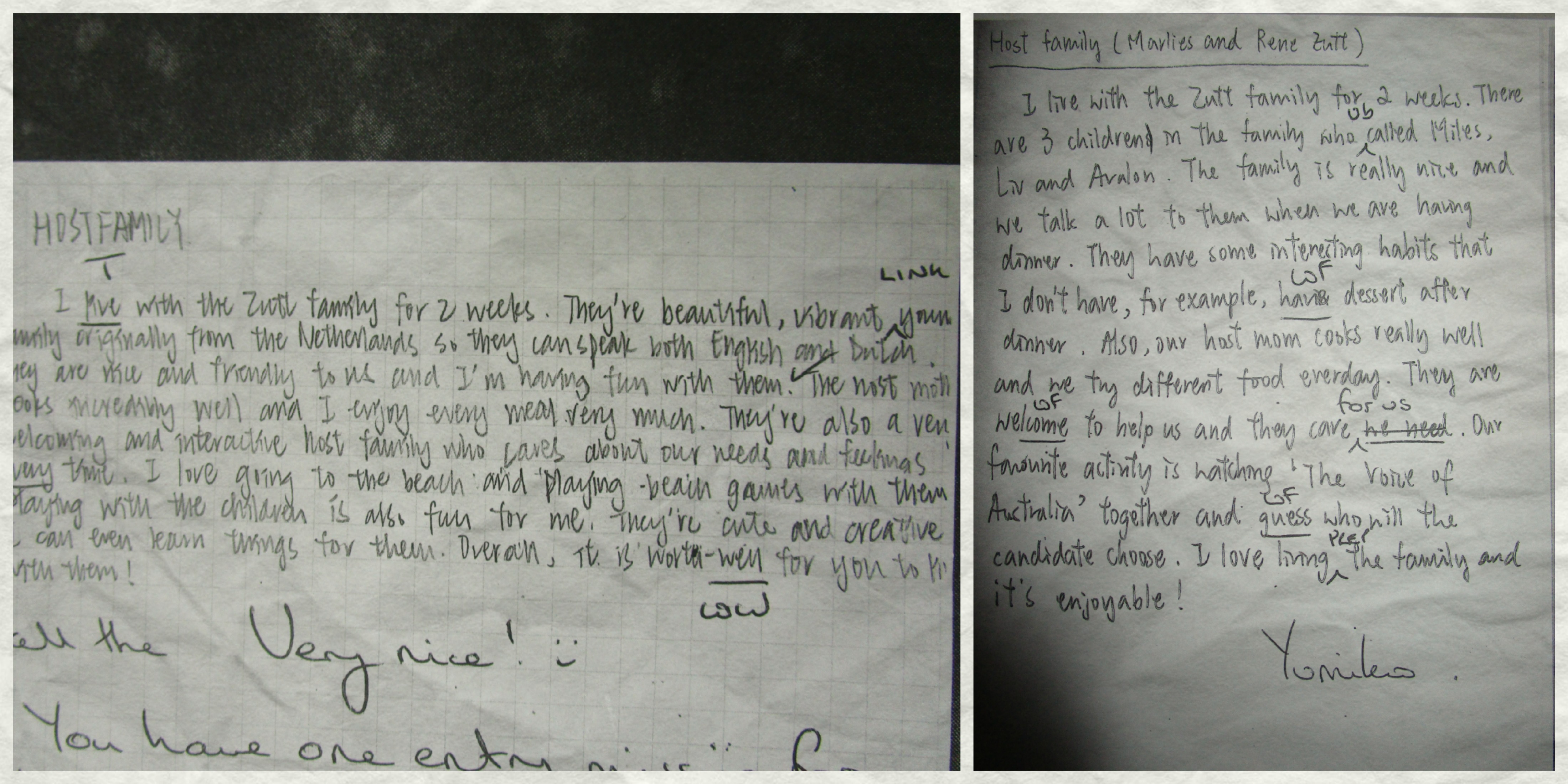 Here in Noosa, we have some of the best families in the world. Some are Australians, some come from abroad to start a new life in this amazing country, all are kind, generous people. Our girls from OLR beautifully described their home-stay families in their journals and were nice enough to share their thoughts with TAP staff. Check out a few of their entries! (click to enlarge 🙂 )